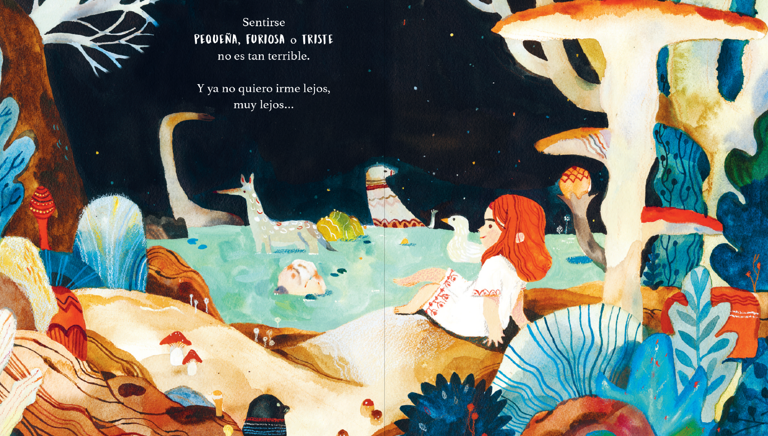 El día a día está lleno de situaciones que nos provocan un abanico de emociones, también a los más pequeños. La protagonista de este álbum describe cómo, en una sola jornada, puede pasar de un estado de euforia a otro de tristeza y, en medio, experimentar un sinfín de sentimientos contradictorios que pueden provocar frustración e incluso deseos de desaparecer. Sin embargo, existe un lugar dentro de cada uno de nosotros donde es posible transformar ese deseo en una sensación positiva y saludable: «Sentirse pequeña, furiosa o triste no es tan terrible».