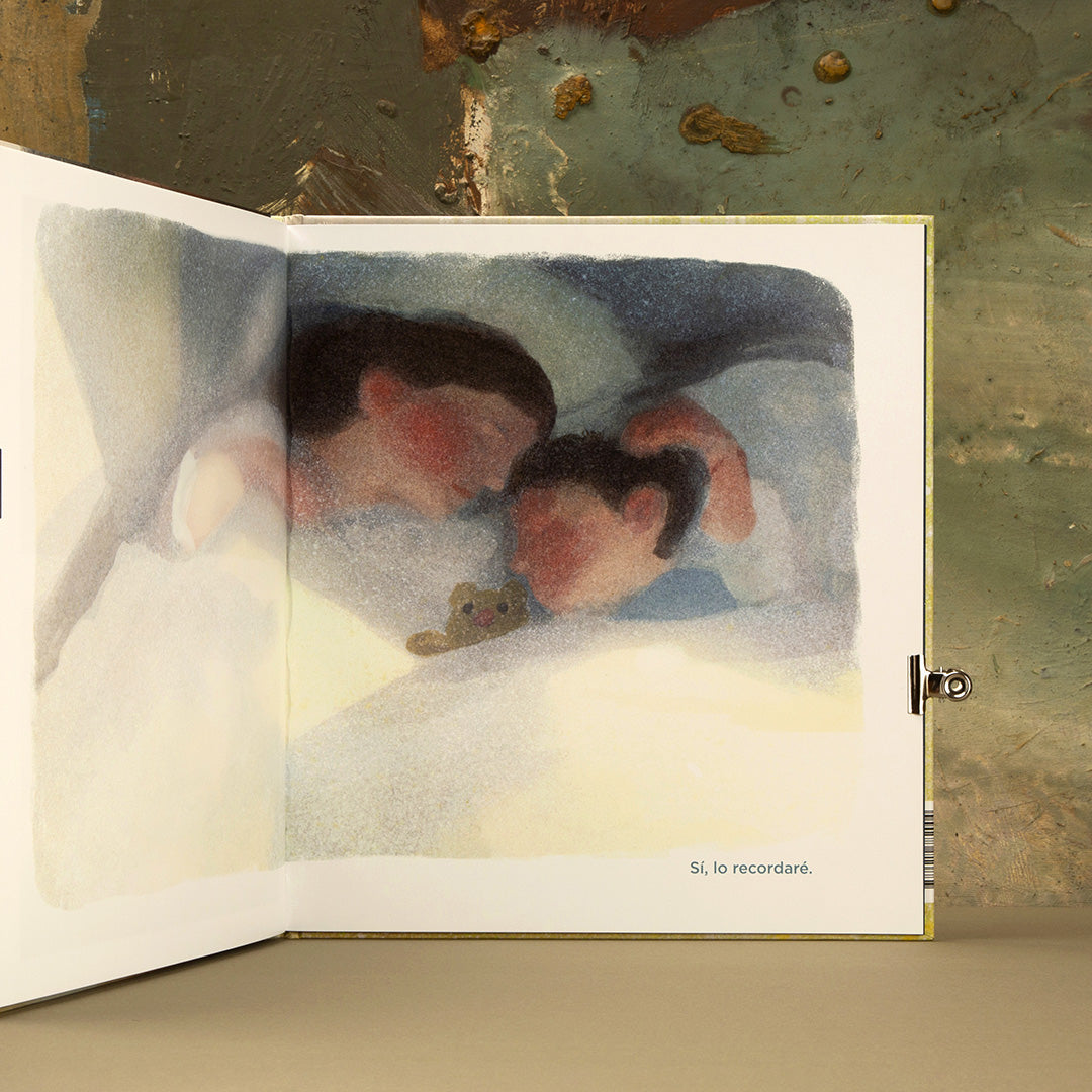 Entre el sueño y la vigilia, una madre y su hijo comparten recuerdos favoritos. El dulzor de las bayas recogidas en un pícnic con el padre, aquella caída en bicicleta sobre un montón de heno, el olor de la lámpara de aceite del abuelo durante una tormenta.